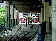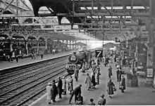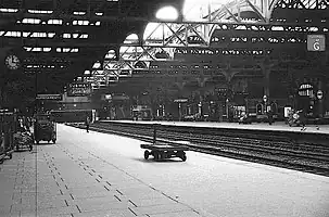 ![]() Una DMU en uno de los andenes de la bahía norte de la estación en 1967 |