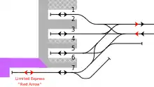 | 1–7 | ■ Línea Ikebukuro | Nerima, Tokorazawa, Hannō Línea Chichibu a Mitsumineguchi Expreso limitado Red Arrow (andén 7) |