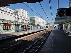 La estación está a cota de calle, por lo que para cambiar de andén hay cruzar una pasarela por encima de las vías. La pasarela está equipada con escaleras y ascensor.