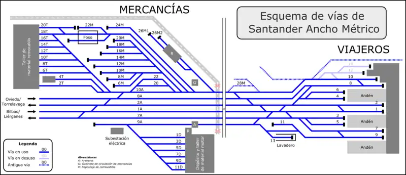 * Instalaciones con Vías de Apartado: 05650 Santander Mercancías: vías 10M, 12M, 2M, 8M, 4M y 14M (pág. 592)