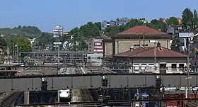 ![]() Plano de la estación de Schaffhausen. A la derecha, edificio de la estación. | ||