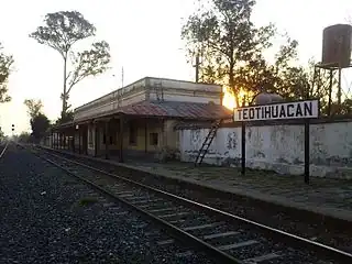 Teotihuacán fue un estación de trenes que se encuentra en San Sebastián Xolalpa, municipio de Teotihuacán, Estado de México.[1] La estación contaba con bodegas, casas de sección y una caseta aislada.[2] Actualmente opera un tren exclusivo de Kansas City Southern de México llamado el El Mexica, este tren inició operaciones en el 2018, cuenta con 15 vagones y tiene capacidad para 890 personas.[3]