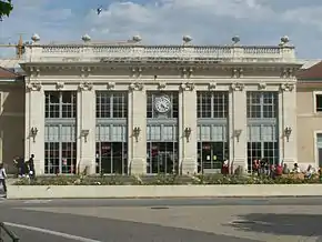La estación que data de 1865 fue realizada por Jules Bouchot, arquitecto de Napoleón III. Su fachada principal de piedra, se inspira en el Gran Trianón de Versailles y se compone de cinco grandes ventanales que rodean seis pilares empotrados adornados con capiteles dóricos. En la parte superior, está coronada con una larga balaustrada. Dos alas laterales, ligeramente retrasadas en relación con la fachada principal completan el edificio. Como suele ser habitual en las estaciones francesas un antiguo reloj de aguja también está presente en el centro de la fachada.