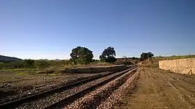 ![]() A la izquierda, restos del andén y antiguo emplazamiento de la hoy desaparecida estación de Villanueva del Rey | ||