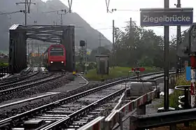 ![]() Puente sobre el río Linth a la entrada de la estación de Ziegelbrücke. | ||
