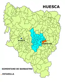 Estadilla es un municipio y villa situado en el extremo oriental de la comarca del Somontano de Barbastro, en la provincia de Huesca, comunidad autónoma de Aragón, España. Limita con los municipios de Barbastro, Estada, Graus, Peralta de Calasanz, Azanuy-Alins y Fonz.