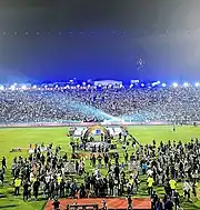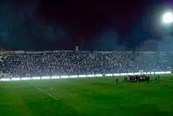 - Palco azul de dirigentes.