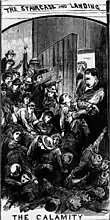 El 16 de junio de 1883, los Fay[¿quién?] organizaron un espectáculo para niños en el Victoria Hall, con un público estimado de 1100 niños.[2] Al final del espectáculo, los Fay anunciaron que los niños cuyas entradas estuvieran numeradas con un número concreto recibirían un premio a la salida. Al mismo tiempo, los actores comenzaron a repartir regalos desde el escenario a los niños del teatro. Por temor a quedarse sin los premios, muchos niños acudieron a las escaleras que conducen a la planta baja.[3]