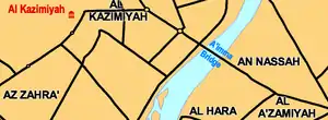 ![]() Los peregrinos cruzaban al este desde Al Kazimiyah sobre el puente A'imma (Al-Ayma). | ||