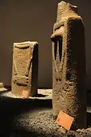Las estatuas-menhir son losas de piedra que han sido preparadas para mostrar el contorno estilizado del cuerpo humano. Originalmente estaban de pie y también pueden mostrar ropa, armas o joyas en relieve.[2]