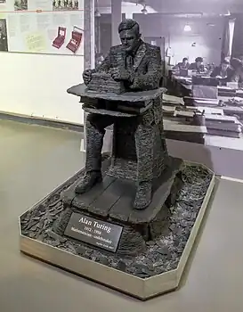 Una estatua de Alan Turing, creada en pizarra por Stephen Kettle en 2007, se encuentra en el Bletchley Park, Bletchley en Inglaterra como parte de una exposición que rinde homenaje al criptoanalista y matemático Alan Turing por el centenario de su nacimiento.[1][2] Fue encargado por el empresario y filántropo estadounidense Sidney Frank.[3]