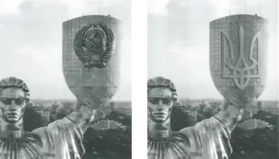 El 1 de agosto, se eliminó el emblema soviético del Monumento a la Madre Patria y se renombró Monumento a la Madre Ucrania. Su reemplazo por el tridente ucraniano se completó el 6 de agosto de 2023, como parte de los preparativos para el 24 de agosto, el Día de la Independencia de Ucrania.