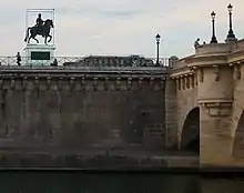La estatua ecuestre de Enrique IV es un monumento, en forma de estatua ecuestre de bronce, dedicado al rey Enrique IV de Francia, al que representa con armadura, corona de laurel y con un cetro con la flor de lis en la mano derecha, mirando en dirección hacia el quai des Orfèvres, mientras que el caballo mira hacia el quai de l'Horloge. Está situado en una zona del centro histórico de la ciudad de París que tuvo su ordenación urbana durante el reinado de este rey (el Pont Neuf, tras la place Dauphine, prolongada en la rue Dauphine).[1]
