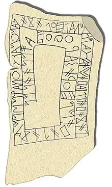 Frente a lo que se puede observar en otras muestras de escrituras paleohispánicas, aunque está presente en otros textos encontrados en el área tartésica, el texto de la estela no muestra ninguna marca de separación entre términos o palabras, y está compuesto de 75 caracteres consecutivos.[2] Resulta extraordinario por su extensión y porque no usa el signo "u" (y consecuentemente tampoco los signos de oclusiva que preceden a "u").[4]