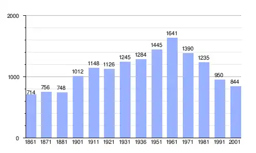 | Gráfica de evolución demográfica de Esterzili entre 1861 y 2001 |