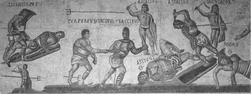- Collezione Borghese, fuente citada en Mosaico del gladiatore