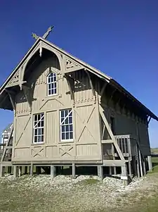 Se usó comúnmente en casas, estaciones de tren, estaciones de salvamento y otros edificios de la época.