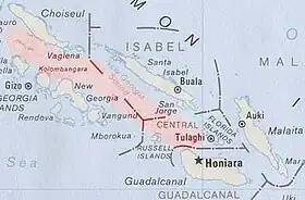 | Isla | Choiseul, Santa Isabel, islas Florida, Vella Lavella, Kolombangara, Nueva Georgia, islas Russell, Bougainville y Guadalcanal | |