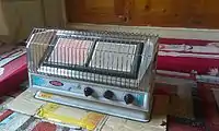 Es un tipo de estufa que genera el calor mediante la combustión de un gas, generalmente butano, en un quemador en la atmósfera que emite el calor. Su gran ventaja es que es económica de adquirir y que genera mucha más potencia que las eléctricas, calentando el ambiente mucho más deprisa.