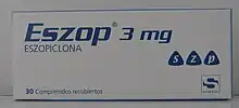 La eszopiclona (S)-6-(5-Clor-2-piridil)- 6,7-dihidro-7-oxo-5H-pirrolo[3,4-b]pirazin- 5-il-4-metil-1-piperazincarboxilato es el enantiómero S (+) activo de la zopiclona.[1] Es un hipnótico[2] no benzodiazepina.[3] Posee dos enantiómeros S y R, siendo el primero hipnótico (no benzodiacepínico de vida corta[4]).