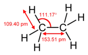 Los parámetros de enlace del etano se han medido con gran precisión mediante espectroscopia de microondas y difracción de electrones: rC-C = 1. 528(3) Å, rC-H = 1.088(5) Å, y ∠CCH = 111.6(5)° por microondas y rC-C = 1.524(3) Å, rC-H = 1.089(5) Å, y ∠CCH = 111.(5)° por difracción de electrones. 9(5)° por difracción de electrones (los números entre paréntesis representan las incertidumbres en los dígitos finales).[11]
