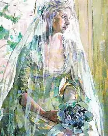 Mientras vivía en París, Gabain comenzó a trabajar en un tema centrado en "mujeres jóvenes melancólicas". Produjo numerosas imágenes litográficas de una mujer joven solitaria. Gabain revisó este tema más adelante en su carrera y produjo varias imágenes diferentes de una joven novia triste. Ella siempre usó a su modelo favorita, Carmen Watson, en estas representaciones. Cuando Carmen se casó en 1940, había posado más de sesenta veces para Gabain. Fue a través de una imagen anterior, The Striped Petticoat, que conoció a Harold J. L. Wright de Messrs. Colnaghi and Co. Él vio esta litografía y se comunicó con Gabain para preguntarle si Colnaghi's podía convertirse en sus editores. Esto llevó a una amistad de por vida.