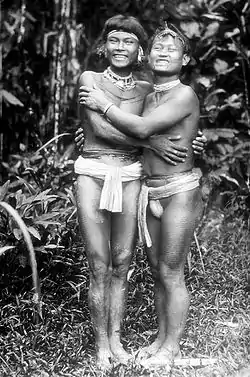 Habitan unas grandes construcciones comunales llamadas uma, edificadas con bambú y hierba. El suelo se eleva y se cubre con placas de madera. Los hombres se adornan con collares y flores que colocan en manos y orejas.