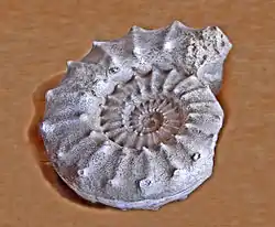 ![]() Fósil de Euaspidoceras perarmatum de Calvados, en exhibición en la Galerie de paléontologie et d'anatomie comparée en París | ||