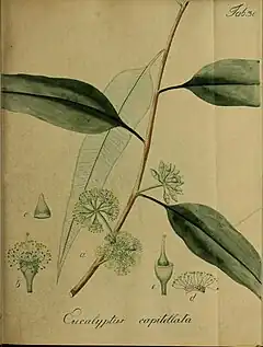 Especímenes de E. capitellata recolectados por el cirujano de las expediciones británicas y naturalista John White. Una imagen del fruto de la especie fue publicada por James Edward Smith en 1790, pero incorrectamente atribuida a E. piperita. E. capitellata fue eventualmente publicada por Smith en 1793.[2]