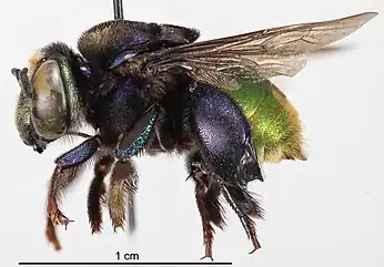 Eufriesea purpurata es una especie de abeja orquídea eusocial común en el noreste de América del Sur, particularmente en la cuenca del Amazonas[1][2]. Es un importante polinizador de diversas plantas silvestres, y se destaca por su atracción a diversos compuestos utilizados por los humanos, incluyendo algunos insecticidas.