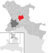Se encuentra ubicada al norte del estado, cerca de la ciudad de Salzburgo —la capital del estado— y de la frontera con el estado de Alta Austria y Alemania.[2]