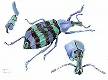 El gorgojo azul (Eupholus magnificus) es una especie de escarabajo que pertenece a la familia Curculionidae.