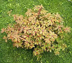 Euphorbia: nombre genérico que deriva del médico griego del rey Juba II de Mauritania (52 a 50 a. C. - 23), Euphorbus, en su honor – o en alusión a su gran vientre – ya que usaba médicamente Euphorbia resinifera. En 1753 Carlos Linneo asignó el nombre a todo el género.[3]