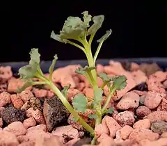 Es una pequeña planta herbácea perennifolia con hojas carnosas sin espinos.[1]