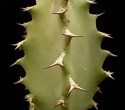 Es una planta suculenta y espinosa muy parecida a Euphorbia collenetteae