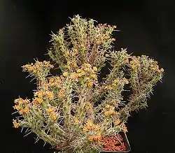 Es un arbusto suculento que alcanza un tamaño de 30 cm de alto y que forma cojines de 40 cm de diámetrlo; irregularmente y densamente ramificado, con raíces fibrosas; el tallo primario corto, de 25 mm Ø, las ramas horizontales ascendentes, glabras.[2]