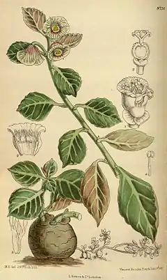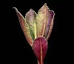 Es una planta suculenta con grandes raíces carnosas, tuberosas, negruzcas; con un tamaño de 10-30 cm de altura. Hojas sésiles, obovadas a oblanceoladas, de 2-6 x 1,5-4 cm, apiculadas carnosas, de color verde oscuro, con vetas más pálidas, o con frecuencia enrojecida púrpura, por lo general minuciosamente pubérulas, estípulas glandulares. Las inflorescencias en cimas sobre pedúnculos de 2-3 cm de largo. Cápsula con semillas oblongas.[1]