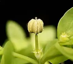 El fruto es una cápsula globular o ligeramente elíptica de entre 1,2 y 3 milímetros de longitud con un pedicelo de entre 1 y 3 mm. En los dorsos de la cápsula aparecen dos alas membranosas. Las semillas son blancas o grises ovoides con sección ligeramente hexagonal de entre 1 y 1,7 mm. Poseen un surco longitudinal ventral y hasta 5 alveolos dorsales.[2][3]
