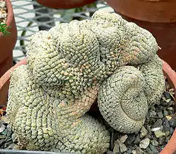 Es una planta suculenta con un tallo simple subgloboso-cilíndrico de 11x7, 5 cm, por lo general menos, cubiertos por tubérculos truncadas dispuestas en espiral apretados, con los márgenes superiores hacia arriba.[1]