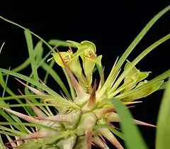 Se trata de una planta suculenta arbustiva que se encuentra en las laderas rocosas y secas de los inselbergs, a una altitud de 0-499 metros.[3]