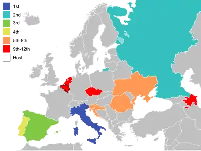 Mapa de las posiciones finales de la UEFA Futsal Euro 2014.