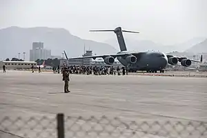 ![]() Abordaje de un Boeing C-17 Globemaster III de la Fuerza Aérea de los Emiratos Árabes Unidos el 20 de agosto de 2021 | ||