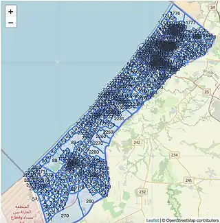 ![]() División israelí de la Franja de Gaza en 620 zonas[1] | ||