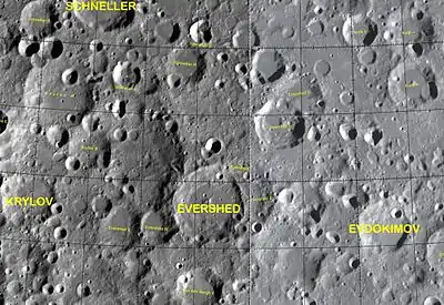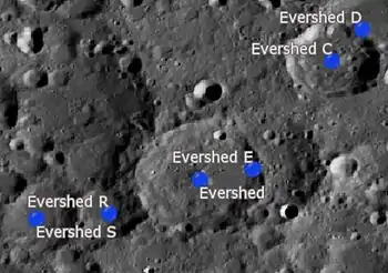 ![]() Localización de Evershed. Fotografía de la misión Lunar Reconnaissance Orbiter |