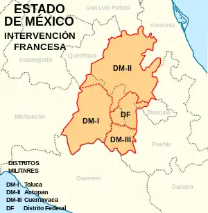 Al inicio de la Intervención Francesa, el 3 de agosto de 1862, estando en retirada en la ciudad de Toluca, el presidente Juárez crea tres distritos militares en el Estado de México con la anuencia del gobernador Francisco Ortiz Zárate.[6]