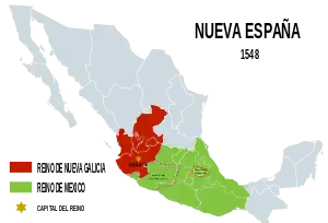 En 1548 se creó la Real Audiencia de Guadalajara con lo cual la Nueva España quedó dividida en dos grandes reinos uno llamado Reino de Nueva Galicia y el otro como Reino de México que llegó a comprender más o menos los actuales estados de México, Guerrero, Puebla, Michoacán, Hidalgo, Tlaxcala, Querétaro, parte de Jalisco y el Distrito Federal. En algún momento comprendió también Oaxaca pero por su lejanía tuvo de hecho una vida totalmente independiente.[1]