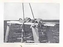 Los entierros aéreos (también conocidos como entierros en árboles) son una forma de entierro secundario, donde un cuerpo se coloca separado del suelo, ya sea en un árbol o en un andamio. Después de un período prolongado de tiempo (de meses a años) los restos son desencarnados y enterrados bajo tierra. Los entierros aéreos fueron practicados en las Grandes Llanuras por muchas sociedades diferentes, incluidos los comanches,[4] los pies negros, los siux, los dakotas,[5] los cheyenes, los mandan y los crow.[14] Los entierros aéreos se practicaban por razones tanto espirituales como prácticas. Algunas tribus, como los sioux y los lakota, creían que elevar los restos facilitaría mejor el viaje de un espíritu fuera de su cuerpo.[14] Además, elevar los restos protegía a los cuerpos de ser devorados por los lobos y permitía controlar las enfermedades cuando no era posible enterrarlos, como en invierno, cuando el suelo era demasiado duro.[4] Por último, algunos grupos nómadas tenían cementerios específicos que solo visitaban una vez al año.[4]