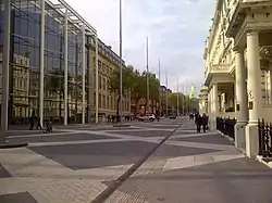 Mirando hacia el norte antes de la implementación del diseño de espacio compartido con el Museo de Ciencias a lo lejos.