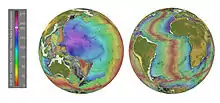 - Los datos paleomagnéticos se han utilizado para calcular que el radio de la Tierra hace 400 millones de años era de 102 ± 2,8% del radio de hoy.[91][16] Sin embargo, la metodología empleada ha sido criticada por el geólogo ruso Yuriy Chudinov.[92]