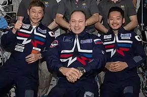 | Como reservas tenían al cosmonauta Aleksandr Skvortsov y al japonés Shun Ogiso[12]. Maezawa no tenía repuesto ya que él era el beneficiario del viaje. | ||||